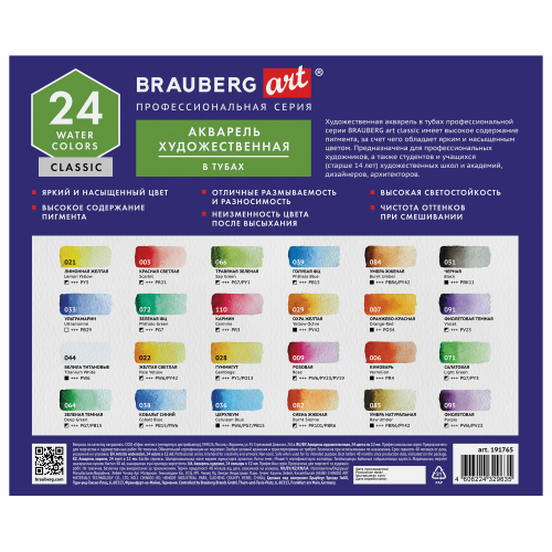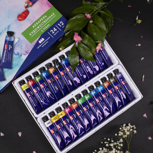 В наборе 24 цвета в тубах по 12 мл: