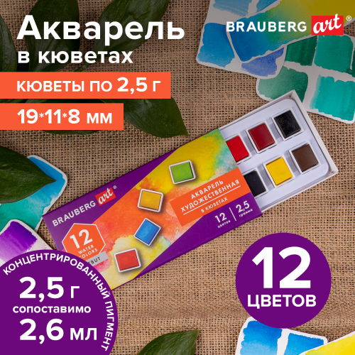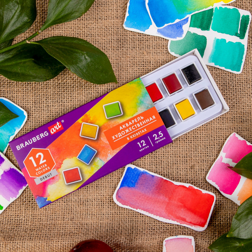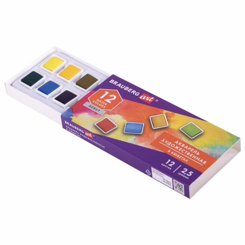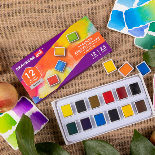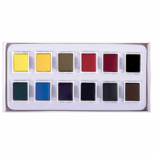 В наборе 12 цветов в кюветах по 2,5 грамма: