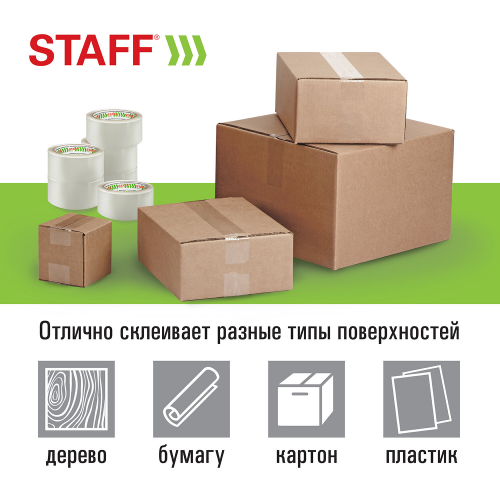 Толщина скотча 40 мкм позволяет переносить воздействие низких температур и влажности и выдерживать вес коробки 15-17 кг. Клейкой ленты шириной 48 мм и длиной намотки 120 м хватит на продолжительное время. Цвет - прозрачный.
