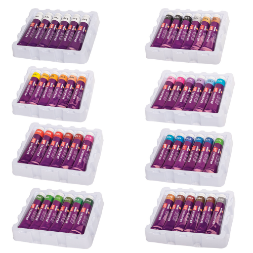 Краски с матовым финишем. Легко наносятся практически на любую поверхность. Быстро высыхают без изменения цвета. Обладают отличной укрывистостью и светостойкостью. Разбавляются водой. Не токсичны и не имеют неприятного резкого запаха. Краски в тубах объемом 22 мл поставляются в картонной коробке.