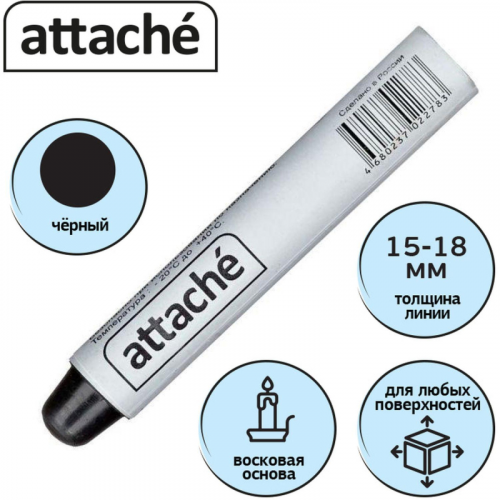 Маркер промышленный Attache для универсальной маркировки черный. Улучшенная производительность по любому типу поверхности: металл, дерево, бетон, пластик, керамика, резина, картон и бумага; по сухим, влажным, масленым, грязным, ржавым, грубым и гладким поверхностям. Надпись, сделанная твердой краской маркера не окисляется в процессе эксплуатации, пишущие характеристики не меняются по мере использования. Специальная формула твердой краски маркера быстро формирует оксидную пленку и становится устойчивой к агрессивным атмосферным воздействиям. Маркеры ПМ-100 не смывается водой, устойчив к ультрафиолетовому излучению, выцветанию, долговечен. Маркер изготовлен на восковой основе, имеет твердый стержень, совершенно незаменим там, где работать с фетровым стержнем невозможно или он быстро портится. Маркер нетоксичен, не содержит свинец. Диапазон рабочих температур: от -20 до +40 градусов Цельсия. Цвет: черный. Размер: 117x18 мм.