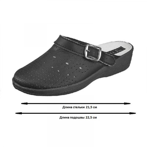 Сабо Яна женские из натуральной кожи черные (размер 36). Удобная обувь, предназначенная для использования в медицинских учреждениях, легкой промышленности и повседневной носке.Верх обуви выполнен из натурального спилка (кожа) толщиной 1,8 мм. Модель оснащена поворотным регулируемым ремешком, который может располагаться впереди для декорации или сзади для фиксации пятки.Подошва на танкетке из ПВХ литьевого метода крепления имеет нескользящий протектор, что повышает безопасность при ходьбе.Обувь предназначена для защиты от общих загрязнений и может использоваться при температуре до -20°С. При длительном воздействии низких температур материал становится хрупким.Соответствует стандартам ТР ТС 017/2011 для обычной обуви повседневного применения.Рекомендуется хранить в условиях, соблюдая срок эксплуатации 90 дней и срок хранения 36 месяцев.ЗАКОНОДАТЕЛЬНЫЕ И ТЕХНИЧЕСКИЕ ДОКУМЕНТЫ: