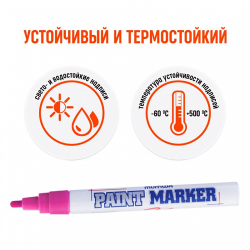 Маркер - краска MunHwa - профессиональный лаковый маркер на нитрооснове. Paint Marker MunHwa пишет на всех типах поверхностей: металл, дерево, резина, бетон, стекло, кожа. Цвет чернил - розовый, диаметр пишущего узла - 4 мм. Количество краски - 10 г. Размеры маркера: диаметр 15 мм, длина 144 мм. Paint Marker подходит для реставрации дефектов на бытовой технике, обуви, кузове автомобиля, а также надписей на каменных плитах. Маркер-краска MunHwa имеет широкое применения в дизайне, декорировании и оформлении. Корпус маркера изготовлен из прочного алюминия. Клапанный механизм пишущего узла исключает растекание и разбрызгивание краски, преждевременное пересыхание маркера, срок годности 5 лет. Благодаря высококачественным чернилам, краска ложиться на поверхность равномерным и однородным слоем, полностью закрашивая обрабатываемую поверхность, быстро сохнет. После высыхания, надписи обладают свето- и водостойкостью, термостойкостью, устойчивостью к механическим воздействиям. Инструкция по применению: 1) Встряхнуть маркер с закрытым колпачком. 2) Открыть колпачок. Удерживая маркер в вертикальном положении, несколько раз надавить стержнем на поверхность до тех пор, пока краска не поступит на пишущих узел. 3) Выполнить надпись или рисунок. Дать составу высохнуть в течение 40-60 секунд. 4) Плотно закрыть колпачок.