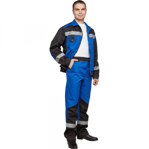 Спецодежда летняя костюм мужской л21-КБР состоит из куртки и брюк (размер 64-66, рост 182-188). Изготовлен из смесовой ткани (65% полиэстер, 35% хлопок) плотностью 240 г/кв.м с водоотталкивающей пропиткой (ВО). Светоотражающая полоса шириной 50 мм размещена на груди, спине, рукавах, а также внизу брюк. Куртка c застежкой на молнию и кнопки. На куртке два верхних накладных кармана. Рукава с налокотниками и манжетами. Ширина пояса куртки регулируется кнопками. Брюки прямого силуэта с застежкой на пуговицы. На передней половине брюк расположены два накладных кармана со скошенным входом. На брюках сзади 2 накладных кармана, один из которых на кнопке, а также боковой накладной карман на кнопке. Весь костюм сшит контрастными нитками белого цвета, двойной строчкой. Костюм предназначен для защиты от общих производственных загрязнений и от механических повреждений, от истирания. ГОСТ 12.4.280-2014, ТР ТС 019/2011. Сферы применения: сельское хозяйство, логистика, легкая промышленность, строительство, тяжелая промышленность. Коллекция рабочей одежды л21 представлена двумя видами комплектов: куртка и полукомбинезон л21-КПК и куртка и брюки Л21-КБР.ЗАКОНОДАТЕЛЬНЫЕ И ТЕХНИЧЕСКИЕ ДОКУМЕНТЫ:
