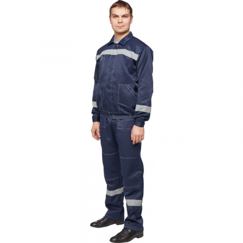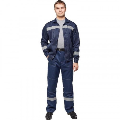 Спецодежда летняя костюм мужской л22-КБР состоит из куртки и брюк (размер 64-66, рост 182-188). Изготовлен из смесовой ткани (80% полиэстер, 20% хлопок) плотностью 210 г/кв.м. Светоотражающая полоса шириной 50 мм размещена на груди, спине, рукавах, а также внизу брюк. Куртка укороченная на поясе, с супатной застежкой на пять петель-пуговиц. Полочка отрезная по линии кокетки, подбор цельнокроеный. Воротник отложной, на куртке три накладных кармана: один верхний нагрудный карман справа с отсрочкой под ручку и два нижних кармана с боковым входом. Рукава с налокотниками и манжетами. Спинка отрезная по линии кокетки. Пояс притачной шириной 4-5 см, с эластичной лентой по бокам. Брюки прямого силуэта, оснащены наколенниками, наличие пяти шлевок. На передней половине брюк расположены два накладных кармана со скошенным входом, гульф (молния). Пояс с пятью шлевками. Весь костюм сшит контрастными нитками белого цвета, двойной строчкой. Костюм предназначен для защиты от общих производственных загрязнений и механических воздействий. ГОСТ 12.4.280-2014, ТР ТС 019/2011. Сферы применения: сельское хозяйство, логистика, легкая промышленность, строительство, озеленение.Коллекция рабочей одежды л22 представлена двумя видами комплектов: куртка и полукомбинезон л22-КПК и куртка и брюки Л22-КБР. ЗАКОНОДАТЕЛЬНЫЕ И ТЕХНИЧЕСКИЕ ДОКУМЕНТЫ:
