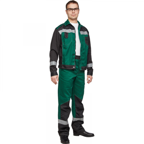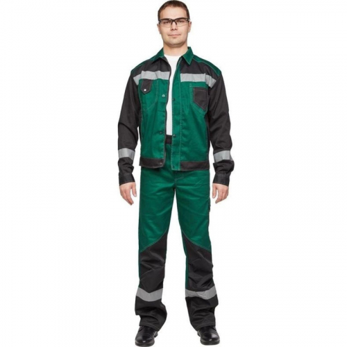 Спецодежда летняя костюм мужской л21-КБР состоит из куртки и брюк (размер 56-58, рост 170-176). Изготовлен из смесовой ткани (65% - полиэстер, 35% - хлопок) плотностью 240 г/кв.м с водоотталкивающей пропиткой (ВО). Светоотражающая полоса шириной 50 мм размещена на груди, спине, рукавах, а также внизу брюк. Куртка c застежкой на молнию и кнопки. На куртке два верхних накладных кармана. Рукава с налокотниками и манжетами. Ширина пояса куртки регулируется кнопками. Брюки прямого силуэта с застежкой на пуговицы. На передней половине брюк расположены два накладных кармана со скошенным входом. На брюках сзади 2 накладных кармана, один из которых на кнопке, а также боковой накладной карман на кнопке. Весь костюм сшит контрастными нитками белого цвета, двойной строчкой. Костюм предназначен для защиты от общих производственных загрязнений и от механических повреждений, от истирания. ГОСТ 12.4.280-2014, ТР ТС 019/2011. Сферы применения: сельское хозяйство, логистика, легкая промышленность, строительство, тяжелая промышленность.Коллекция рабочей одежды л21 представлена двумя видами комплектов: куртка и полукомбинезон л21-КПК и куртка и брюки Л21-КБР.ЗАКОНОДАТЕЛЬНЫЕ И ТЕХНИЧЕСКИЕ ДОКУМЕНТЫ:
