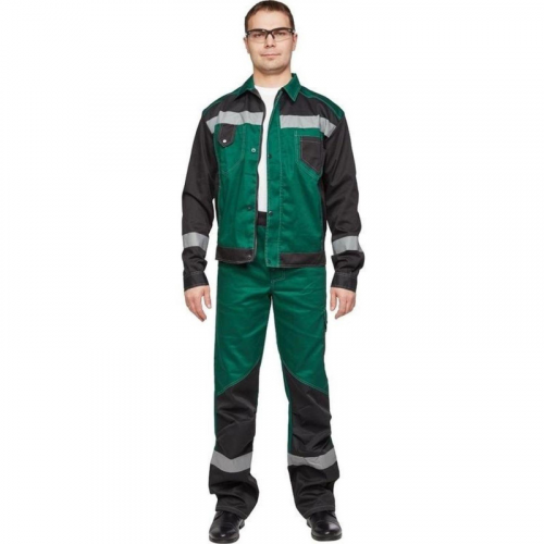 Спецодежда летняя костюм мужской л21-КБР состоит из куртки и брюк (размер 44-46, рост 182-188). Изготовлен из смесовой ткани (65% - полиэстер, 35% - хлопок) плотностью 240 г/кв.м с водоотталкивающей пропиткой (ВО). Светоотражающая полоса шириной 50 мм размещена на груди, спине, рукавах, а также внизу брюк. Куртка c застежкой на молнию и кнопки. На куртке два верхних накладных кармана. Рукава с налокотниками и манжетами. Ширина пояса куртки регулируется кнопками. Брюки прямого силуэта с застежкой на пуговицы. На передней половине брюк расположены два накладных кармана со скошенным входом. На брюках сзади 2 накладных кармана, один из которых на кнопке, а также боковой накладной карман на кнопке. Весь костюм сшит контрастными нитками белого цвета, двойной строчкой. Костюм предназначен для защиты от общих производственных загрязнений и от механических повреждений, от истирания. ГОСТ 12.4.280-2014, ТР ТС 019/2011. Сферы применения: сельское хозяйство, логистика, легкая промышленность, строительство, тяжелая промышленность.Коллекция рабочей одежды л21 представлена двумя видами комплектов: куртка и полукомбинезон л21-КПК и куртка и брюки Л21-КБР.ЗАКОНОДАТЕЛЬНЫЕ И ТЕХНИЧЕСКИЕ ДОКУМЕНТЫ: