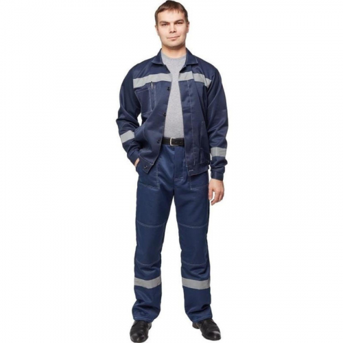 Спецодежда летняя костюм мужской л22-КБР состоит из куртки и брюк (размер 48-50, рост 158-164). Изготовлен из смесовой ткани (80% полиэстер, 20% хлопок) плотностью 210 г/кв.м. Светоотражающая полоса шириной 50 мм размещена на груди, спине, рукавах, а также внизу брюк. Куртка укороченная на поясе, с супатной застежкой на пять петель-пуговиц. Полочка отрезная по линии кокетки, подбор цельнокроеный. Воротник отложной, на куртке три накладных кармана: один верхний нагрудный карман справа с отсрочкой под ручку и два нижних кармана с боковым входом. Рукава с налокотниками и манжетами. Спинка отрезная по линии кокетки. Пояс притачной шириной 4-5 см, с эластичной лентой по бокам. Брюки прямого силуэта, оснащены наколенниками, наличие пяти шлевок. На передней половине брюк расположены два накладных кармана со скошенным входом, гульф (молния). Пояс с пятью шлевками. Весь костюм сшит контрастными нитками белого цвета, двойной строчкой. Костюм предназначен для защиты от общих производственных загрязнений и механических воздействий. ГОСТ 12.4.280-2014, ТР ТС 019/2011. Сферы применения: сельское хозяйство, логистика, легкая промышленность, строительство, озеленение. Коллекция рабочей одежды л22 представлена двумя видами комплектов: куртка и полукомбинезон л22-КПК и куртка и брюки Л22-КБР. ЗАКОНОДАТЕЛЬНЫЕ И ТЕХНИЧЕСКИЕ ДОКУМЕНТЫ: