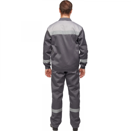 Спецодежда летняя костюм мужской л22-КПК состоит из куртки и полукомбинезона (размер 48-50, рост 182-188) . Изготовлен из смесовой ткани (80% полиэстер, 20% хлопок) плотностью 210 г/кв.м. Светоотражающая полоса шириной 50 мм размещена на груди, спине, рукавах, а также внизу полукомбинезона. Куртка укороченная на поясе, с супатной застежкой на пять петель-пуговиц. Полочка отрезная по линии кокетки, подбор цельнокроеный. Воротник отложной, на куртке три накладных кармана: один верхний нагрудный карман справа с отсрочкой под ручку и два нижних кармана с боковым входом. Рукава с налокотниками и манжетами. Спинка отрезная по линии кокетки. Пояс притачной шириной 4-5 см, с эластичной лентой по бокам. Полукомбинезон прямого силуэта, оснащен наколенниками. На передней половине полукомбинезона расположены два накладных кармана со скошенным входом. Пояс с пятью шлевками. Весь костюм сшит контрастными нитками белого цвета, двойной строчкой. Костюм предназначен для защиты от общих производственных загрязнений и механических воздействий. ГОСТ 12.4.280-2014, ТР ТС 019/2011. Сферы применения: сельское хозяйство, логистика, легкая промышленность, строительство, озеленение. Коллекция рабочей одежды л22 представлена двумя видами комплектов: куртка и полукомбинезон л22-КПК и куртка и брюки Л22-КБР.