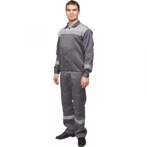 Спецодежда костюм мужской л22-КПК состоит из куртки и полукомбинезона (размер 68-70, рост 182-188) . Изготовлен из смесовой ткани (80% полиэстер, 20% хлопок) плотностью 210 г/кв.м. Светоотражающая полоса шириной 50 мм размещена на груди, спине, рукавах, а также внизу полукомбинезона. Куртка укороченная на поясе, с супатной застежкой на пять петель-пуговиц. Полочка отрезная по линии кокетки, подбор цельнокроеный. Воротник отложной, на куртке три накладных кармана: один верхний нагрудный карман справа с отсрочкой под ручку и два нижних кармана с боковым входом. Рукава с налокотниками и манжетами. Спинка отрезная по линии кокетки. Пояс притачной шириной 4-5 см, с эластичной лентой по бокам. Полукомбинезон прямого силуэта, оснащен наколенниками. На передней половине полукомбинезона расположены два накладных кармана со скошенным входом. Пояс с пятью шлевками. Весь костюм сшит контрастными нитками белого цвета, двойной строчкой. Костюм предназначен для защиты от общих производственных загрязнений и механических воздействий. ГОСТ 12.4.280-2014, ТР ТС 019/2011. Коллекция рабочей одежды л22 представлена двумя видами комплектов: куртка и полукомбинезон л22-КПК и куртка и брюки Л22-КБР . Соответствует базовым характеристикам, заявленному ГОСТ и ТР ТС. Длительность эксплуатиции СИЗ зависит от правильного ношения, хранения, условий работы и норм выдачи, установленных в организации и на предприятии. Законодательные и технические документы