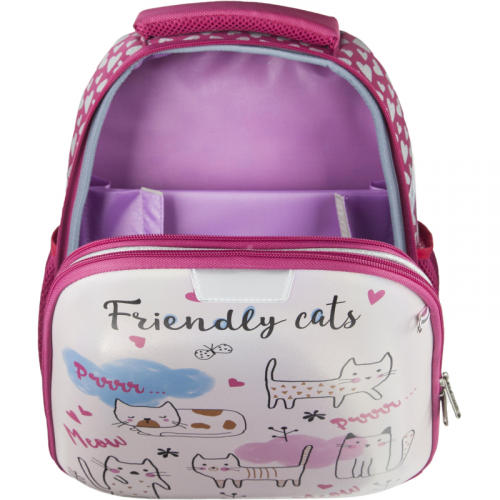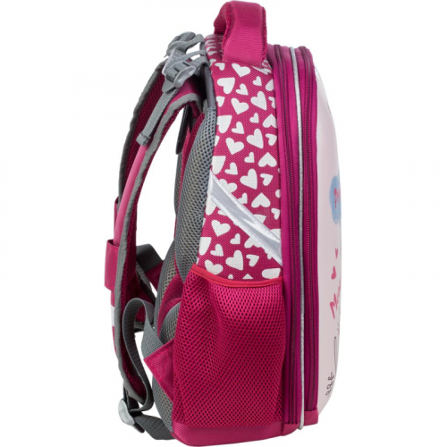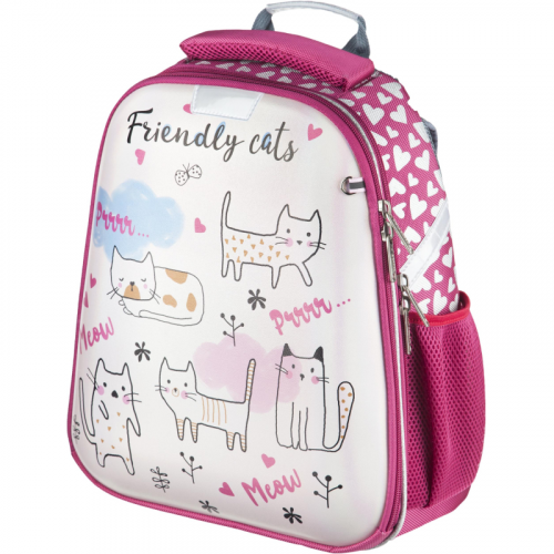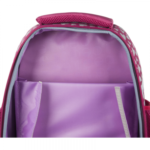 Ранец для девочки эргономичной обтекаемой формы. Жесткий каркас. Анатомическая спинка. Материал передней крышки ранца - блестящая износостойкая экокожа. Материал корпуса - прочный полиэстер. Ранец имеет два отдела на молнии. В основном отделении - гибкая перегородка, предназначенная для удобного хранения книг и тетрадей, и прозрачный карман с вкладышем для расписания уроков. Во втором - сетчатый карман и карман-органайзер. Дышащая спинка. Ранец оснащен двумя ручками: одна узкая, чтобы вешать на парту, вторая широкая и мягкая, чтобы удобно носить в руке. Широкие удобные лямки из воздухообменного сетчатого материала регулируются по длине и по спинке ранца - удобно подогнать под рост ребенка, что позволяет добиться наиболее комфортного расположения ранца на спине. Благодаря устойчивому дну и ножкам ребенку будет удобно находить нужные учебники и тетради. Боковые карманы-сеточки для бутылки и прочих аксессуаров. Плотное дно удерживает форму. Для безопасности ребенка в темное время суток предусмотрены светоотражатели на передней части ранца, на лямках и над боковыми карманами. Особенности: блестящая экокожа; объемные ушки из экокожи; брелок-пушок в комплекте. Размер: 280x150x360 мм. Цвет подкладки рюкзака может отличаться от варианта, представленного на фото. Законодательные и технические документы "В рамках ребрендинга производится перевод данного артикула с ТМ №1School на ТМ Комус Класс с сохранением всех потребительских характеристик товара. На переходный период допускается поставка данной продукции в двух вариантах дизайна.