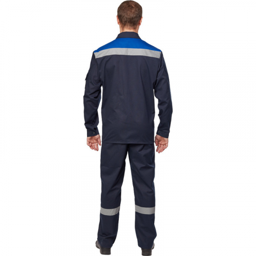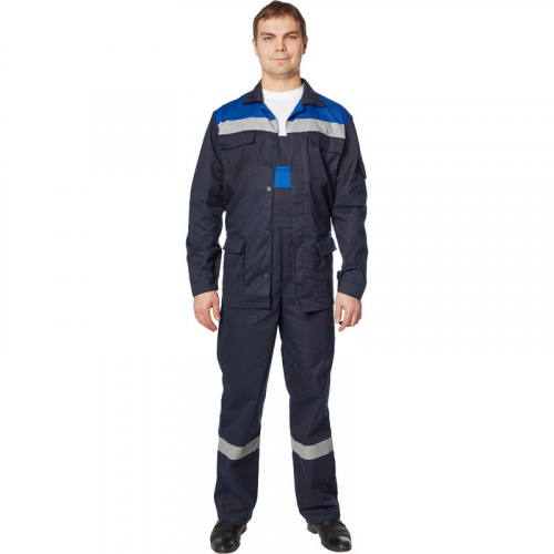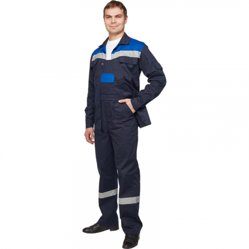 Костюм рабочий летний мужской л05-КПК с СОП синий/васильковый (размер 48-50, рост 182-188). Коллекция спецодежды л05 представляет собой практичное и удобное решение для рабочих в различных отраслях, таких как сельское хозяйство, логистика, легкая промышленность и озеленение. Костюм мужской л05-КПК, включающий куртку и полукомбинезон, предназначен для защиты от общих производственных загрязнений и механических воздействий. Костюм изготовлен из ткани 'Саржа', которая состоит из 100% хлопка. Плотность материала составляет 240 г/м2, что обеспечивает высокую прочность и комфорт при носке. Хлопковая ткань обладает хорошей воздухопроницаемостью, что особенно важно при работе в теплую погоду. Материал не имеет специальной пропитки, что делает его безопасным и гипоаллергенным. Полукомбинезон имеет прямой силуэт и оснащен накладными карманами, что обеспечивает удобство и функциональность. Гульфик на пуговицах обеспечивает надежную застежку, а эластичная тесьма по талии спинки позволяет регулировать посадку по фигуре, обеспечивая дополнительный комфорт. Регулируемые бретели позволяют адаптировать полукомбинезон под индивидуальные особенности пользователя. Куртка также имеет прямой силуэт и оснащена объемными накладными карманами, что позволяет хранить необходимые мелочи и инструменты под рукой. Супатная застежка на пуговицы обеспечивает надежное закрытие и защиту от ветра. Куртка выполнена в сочетании синего и василькового цветов, что придает ей современный и стильный вид. Защитные свойства: - З - защита от общих производственных загрязнений; - Ми - защита от механических воздействий (истирания). Костюм соответствует стандартам ГОСТ 12.4.280-2014 и ТР ТС 019/2011. Рекомендации по уходу: для продления срока службы изделия рекомендуется стирать при температуре не выше 40 градусов. Это поможет сохранить первоначальные свойства материала и внешний вид костюма на длительный срок. Коллекция спецодежды л05 включает также комплекты куртки и брюк л05-КБР, что позволяет подобрать наиболее удобный вариант рабочей одежды для различных условий и задач. Цвет на изображении товара может отличаться от оригинала из-за особенностей цветопередачи монитора.