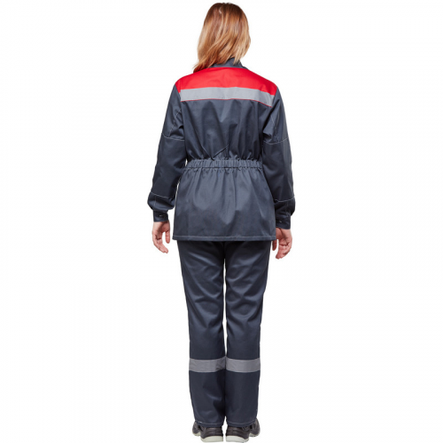 Спецодежда летняя костюм женский л20-КБР (64-66,170-176), состоит из куртки и брюк. Изготовлен из смесовой ткани (65% полиэстер, 35% хлопок) с водоотталкивающей пропиткой. Брюки c накладными карманами и гульфиком на пуговицах. Куртка прямого силуэта c объемными накладными карманами и супатнoй застежкой на пуговицы. Куртка и брюки оснащены светоотражающей полосой. Защитные свойства: Ми - защита от механических воздействий: истирания; З - защита от общих производственных загрязнений. Сферы применения: сельское хозяйство, логистика, легкая промышленность, строительство, озеленение. ГОСТ 12.4.280-2014, ТР ТС 019/2011.