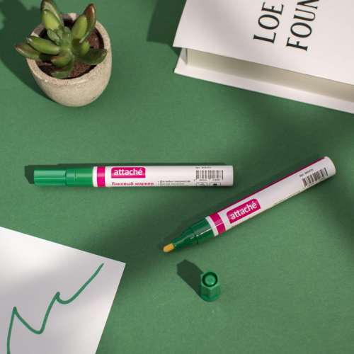 Маркер промышленный Attache для непрозрачной маркировки практически всех материалов, например, стекла, пластика, дерева или металла. Особенно подходит для темных и прозрачных материалов. Чернила маркера с лакирующим эффектом. Водостойкий, быстро сохнет. Поток чернил регулируется клапаном. Алюминиевый корпус. Толщина линии - 4 мм. Количество краски - 6 г. Наконечник изготовлен из Японского качественного материала.Инструкция по применению маркера:1. Перед использованием хорошенько встряхнуть с закрытым колпачком.2. Снимите колпачок, прижмите наконечник к поверхности, надавите и удерживайте пока не проступит краска.3. Применять после того как убедитесь, что вытекает исходный цвет. Предостережения: плотно закрывайте колпачок после применения, держать маркер вдали от огня, прямые солнечные лучи вызывают обесцвечивание.