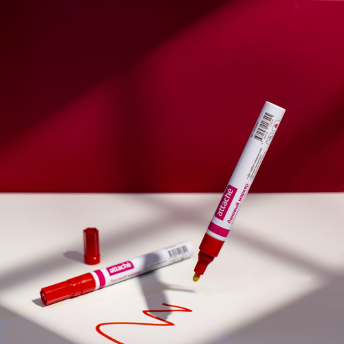 Маркер промышленный Attache для непрозрачной маркировки практически всех материалов, например, стекла, пластика, дерева или металла. Особенно подходит для темных и прозрачных материалов. Чернила маркера с лакирующим эффектом. Водостойкий, быстро сохнет. Поток чернил регулируется клапаном. Алюминиевый корпус. Толщина линии - 4 миллиметра. Количество краски - 4 грамма. Наконечник изготовлен из японского качественного материала. Инструкция по применению маркера: 1. Перед использованием хорошенько встряхнуть с закрытым колпачком. 2. Снимите колпачок, прижмите наконечник к поверхности, надавите и удерживайте, пока не проступит краска. 3. Применять после того, как убедитесь, что вытекает исходный цвет. Предостережения: плотно закрывайте колпачок после применения, держите маркер вдали от огня. Прямые солнечные лучи вызывают обесцвечивание.