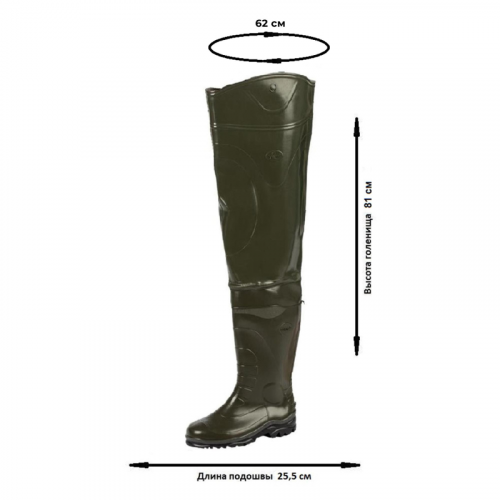 Сапоги рабочие проходческие рыбацкие мужские 162 ПВХ оливковые размер 40. Рекомендуются для рыбалки, туризма и других видов активного отдыха. Верх и голенище выполнены из прочного ПВХ с использованием технологии трехцветного литья. Материал сохраняет эластичность до -30°С. Цельнолитая надставка сапога сварена по современным технологиям, что обеспечивает полную водонепроницаемость. Встроенный термопластичный подносок защищает носок от механических повреждений. Подошва также изготовлена из ПВХ. Упругая, нескользящая, устойчивая к воздействию кислот, щелочей, масел и нефтепродуктов. Вспененный промежуточный слой придает подошве амортизирующие и теплозащитные свойства, снижая усталость ног при длительном использовании. Крепление подошвы - цельнолитое. Сапоги имеют современный дизайн и кроссовочную подошву, что делает их удобными и устойчивыми даже на неровной поверхности. Высота голенища составляет 81 см. Сапоги соответствуют требованиям ТР ТС 019/2011. Гарантийный срок эксплуатации - 30 дней при соблюдении условий ухода и эксплуатации. ЗАКОНОДАТЕЛЬНЫЕ И ТЕХНИЧЕСКИЕ ДОКУМЕНТЫ: