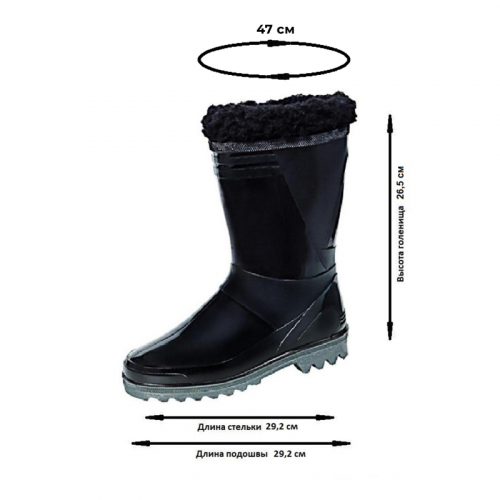 Сапоги рабочие мужские 140 У ПВХ утепленные черные размер 45. Рекомендуются для работы в условиях повышенной влажности и загрязнений на производстве. Верхняя часть изготовлена из ПВХ, подкладка выполнена из трикотажной сетки. Утеплитель - искусственный мех, который обеспечивает защиту от холода. Термопластичный подносок защищает носок обуви от ударов и механических повреждений. Защищают от: - Общих производственных загрязнений. - Растительных и животных масел и жиров. - Кислот и щелочей. - Нефти и нефтепродуктов. - Механических воздействий (истирания). - Скольжения. - Воздействия влаги. Подошва выполнена из ПВХ, двухслойная, устойчивая к скольжению, истиранию и воздействию химических веществ. Метод крепления подошвы - цельнолитой. Стелька отсутствует. Высота голенища составляет 26,5 см, что обеспечивает дополнительную защиту ног. Соответствуют стандартам ТР ТС 019/2011. Гарантийный срок эксплуатации составляет 45 дней при соблюдении правил ухода и эксплуатации. Законодательные и технические документы