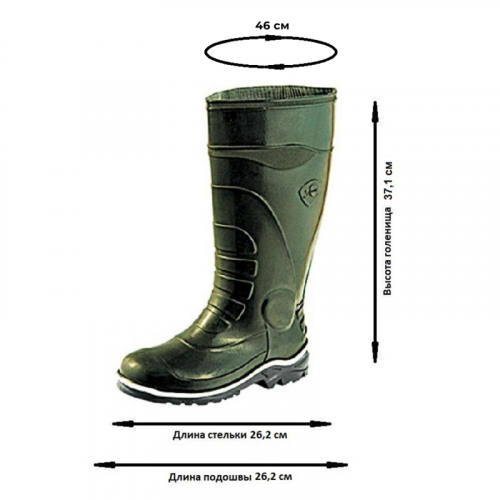 Сапоги рабочие мужские 173 ПВХ оливковые с металлическим подноском размер 41. Рекомендуются для использования на промышленных предприятиях, в строительстве и других сферах с повышенной нагрузкой на обувь. Верх и подошва выполнены из ПВХ. Сапоги оснащены металлическим подноском, выдерживающим силу удара до 200 Дж, что обеспечивает защиту от механических повреждений. Подошва крепится к верху цельнолитым методом, что увеличивает прочность и долговечность изделия. Прослойка из вспененного материала обеспечивает теплоизоляцию и амортизацию, снижая усталость ног при длительном использовании. Обувь имеет защиту от общих производственных загрязнений, от механических повреждений, ударов, истирания, от растительных, животных масел и жиров, скольжения, кислот и щелочей, нефти и нефтепродуктов, а также, от воздействия влаги. Высота голенища составляет 37,1 см. Сапоги соответствуют требованиям ТР ТС 019/2011. Гарантийный срок эксплуатации - 30 дней при соблюдении правил ухода и хранения. Законодательные и технические документы