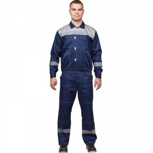 Спецодежда летняя костюм мужской л20-КБР состоит из куртки и брюк (размер 48-50, рост 158-164) . Изготовлен из смесовой ткани (65% полиэстер, 35% хлопок), плотностью 210 г/кв.м. Куртка укороченная на поясе, с супатной застежкой на пуговицы, супатная застежка оснащена флажками для удобства. Рукава с налокотниками и манжетами. Брюки прямого силуэта, оснащены наколенниками, наличие пяти шлевок. На передней половине брюк расположены два накладных кармана со скошенным входом. Для защиты от истирания локтевая и коленная части костюма усилены. Все элементы костюма выделены контрастной отстрочкой. На кокетке, рукавах, и брючинах светоотражающая полоса - 5 см. Защитные свойства: Ми - защита от механических воздействий: истирания; З - защита от общих производственных загрязнений. Сфера применения: озеленение. ГОСТ 12.4.280-2014, ТР ТС 019/2011.