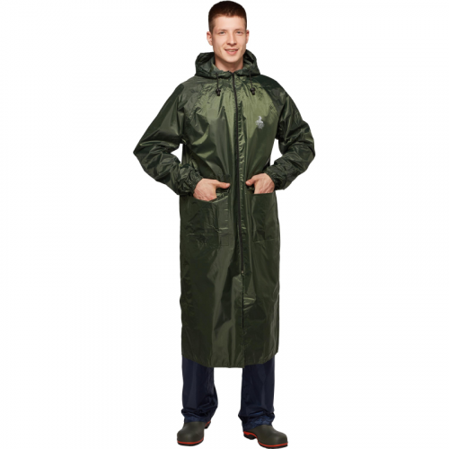 Плащ влагозащитный Тайфун ПВХ на молнии зеленый (размер 44-46, рост 182-188). Плащ "Тайфун" синий обеспечивает максимальную защиту от дождя, ветра, снега и загрязнений. Этот плащ предназначен для использования в различных сферах, таких как строительство, коммунальные службы, городское хозяйство, транспорт и работа на открытом воздухе. Он отлично подходит как для работы, так и для активного отдыха в сложных погодных условиях. Плащ выполнен из полиэфира с ПВХ, плотность ткани - 200 г/кв.м. Это позволяет ему обеспечивать высокую водоотталкивающую способность и защиту от внешних факторов. Проклеенные швы и ветрозащитная планка на молнии гарантируют 100% защиту от протечек и влаги. Модель имеет прямой силуэт с рукавами реглан. Капюшон состоит из 3 частей, притачной и регулируемый с помощью шнура, что делает его более эргономичным. Застежка на витой молнии и ветрозащитной планке также защищает от попадания влаги. Манжеты на рукавах обеспечивают дополнительную защиту от протекания при активном движении. Вентиляционные отверстия в области подмышечных впадин и кокетки эффективно выводят влагу из внутреннего пространства, обеспечивая комфорт при длительном ношении. Шлица на спинке плаща придает свободу движений и удобство. Стандарт: ТР ТС 019/2011, ГОСТ 12.4.288-2013. Рекомендации по уходу: стирка при температуре не выше 30°C, не использовать отбеливатели. размер. Цвет на изображении товара в интернет-магазине или в печатном каталоге может отличаться от оригинала из-за особенностей цветопередачи. ЗАКОНОДАТЕЛЬНЫЕ И ТЕХНИЧЕСКИЕ ДОКУМЕНТЫ: