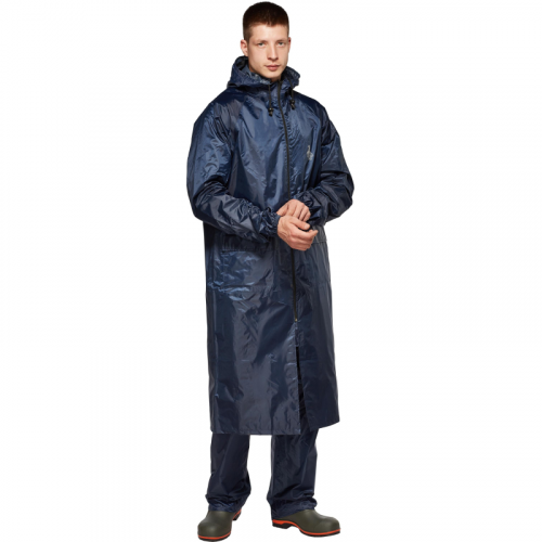 Плащ влагозащитный Тайфун ПВХ на молнии синий (размер 52-54, рост 170-176). Плащ "Тайфун" синий обеспечивает максимальную защиту от дождя, ветра, снега и загрязнений. Этот плащ предназначен для использования в различных сферах, таких как строительство, коммунальные службы, городское хозяйство, транспорт и работа на открытом воздухе. Он отлично подходит как для работы, так и для активного отдыха в сложных погодных условиях. Плащ выполнен из полиэфира с ПВХ, плотность ткани - 200 г/кв.м. Это позволяет ему обеспечивать высокую водоотталкивающую способность и защиту от внешних факторов. Проклеенные швы и ветрозащитная планка на молнии гарантируют 100% защиту от протечек и влаги. Модель имеет прямой силуэт с рукавами реглан. Капюшон состоит из 3 частей, притачной и регулируемый с помощью шнура, что делает его более эргономичным. Застежка на витой молнии и ветрозащитной планке также защищает от попадания влаги. Манжеты на рукавах обеспечивают дополнительную защиту от протекания при активном движении. Вентиляционные отверстия в области подмышечных впадин и кокетки эффективно выводят влагу из внутреннего пространства, обеспечивая комфорт при длительном ношении. Шлица на спинке плаща придает свободу движений и удобство. Стандарт: ТР ТС 019/2011, ГОСТ 12.4.288-2013. Рекомендации по уходу: стирка при температуре не выше 30°C, не использовать отбеливатели. размер. Цвет на изображении товара в интернет-магазине или в печатном каталоге может отличаться от оригинала из-за особенностей цветопередачи. ЗАКОНОДАТЕЛЬНЫЕ И ТЕХНИЧЕСКИЕ ДОКУМЕНТЫ: