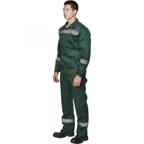 Спецодежда летняя костюм мужской л20-КБР состоит из куртки и брюк. Изготовлен из смесовой ткани (65% полиэстер, 35% хлопок), плотностью 210 г/кв.м. Куртка прямого силуэта с притачным поясом и боковыми вставками с эластичной лентой, для лучшего прилегания. Для защиты от истирания локтевая и коленная части костюма усилены. Все элементы костюма выделены контрастной отстрочкой. На кокетке, рукавах, и брючинах светоотражающая полоса. Защитные свойства: Ми - защита от механических воздействий: истирания; З - защита от общих производственных загрязнений. Сфера применения: озеленение. Размер: 44-46. Рост: 158-164.