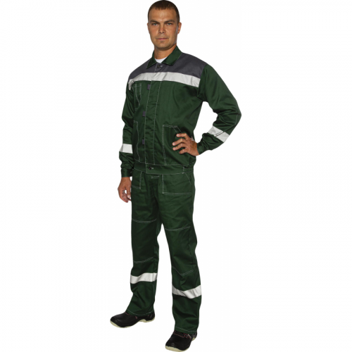 Спецодежда летняя костюм мужской л20-КПК состоит из куртки и полукомбинезона. Изготовлен из смесовой ткани (65% полиэстер, 35% хлопок), плотностью 210 г/кв.м. Полукомбинезон с накладными карманами, гульфиком на пуговицах, эластичной тесьмой по талии спинки и регулируемыми бретелями. Куртка прямого силуэта c объемными накладными карманами и супатнoй застежкой на пуговицы. Куртка и полукомбинезон оснащены светоотражающей полосой. Защитные свойства: Ми - защита от механических воздействий: истирания; З - защита от общих производственных загрязнений. Сфера применения: озеленение. Размер: 48-50. Рост: 158-164.