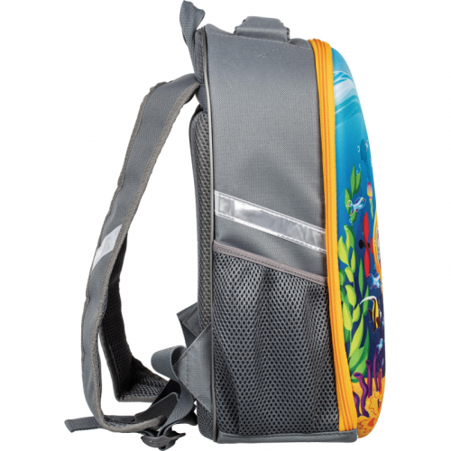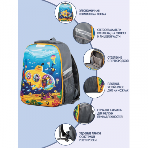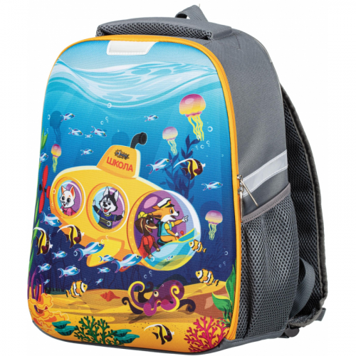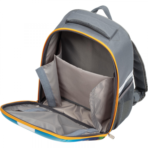 Ранец эргономичной компактной формы. Жесткий каркас. Ранец выполнен из полиэстера. Эргономичная спинка. Особенность данной модели - минимальный вес - 535 г. Благодаря устойчивому дну и ножкам ребенку будет удобно находить нужные учебники и тетради. Боковые карманы с сеточкой подходят для переноски маленькой бутылочки с водой и прочих небольших аксессуаров. Ранец оснащен двумя ручками: одна узкая, чтобы вешать на парту, вторая широкая и мягкая, чтобы удобно носить в руке. Широкие удобные лямки из воздухообменного сетчатого материала регулируются по длине. Плотное дно удерживает форму. Для безопасности ребенка в темное время суток предусмотрены светоотражатели на передней части ранца, на лямках и над боковыми карманами. Размер: 380x290x120 мм. Цвет подкладки рюкзака может отличаться от варианта, представленного на фото.