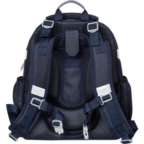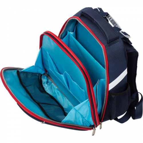 Ранец эргономичной обтекаемой формы. Жесткий каркас. Анатомическая спинка. Ранец выполнен из полиэстера. Ранец имеет два отдела на молнии. В основном отделении - гибкая перегородка, предназначенная для удобного хранения книг и тетрадей, и прозрачный карман с вкладышем для расписания уроков. Во втором - сетчатый карман и карман-органайзер. Благодаря устойчивому дну и ножкам ребенку будет удобно находить нужные учебники и тетради. Боковые карманы с сеточкой подходят для переноски маленькой бутылочки с водой и прочих небольших аксессуаров. Ранец оснащен двумя ручками: одна узкая, чтобы вешать на парту, вторая широкая и мягкая, чтобы удобно носить в руке. Широкие удобные лямки из воздухообменного сетчатого материала регулируются по длине и по спинке ранца - удобно подогнать под рост ребенка. Грудная застежка помогает лучше зафиксировать ранец на теле и снять часть нагрузки с плеч. Плотное дно удерживает форму. Для безопасности ребенка в темное время суток предусмотрены светоотражатели на передней части ранца, на лямках и над боковыми карманами. Размер: 320x215x360 мм.Цвет подкладки рюкзака может отличаться от варианта, представленного на фото. Законодательные и технические документы