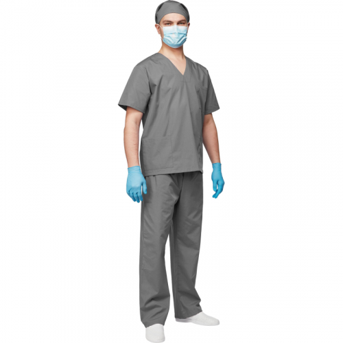 Костюм хирургический м05-КБР серый (размер 48-50, рост 182-188)Костюм м05-КБР предназначен для защиты от общих производственных загрязнений. Универсальная модель подходит для мужчин и женщин, обеспечивая свободу движений и комфорт в процессе работы. МатериалыОсновная ткань: Ти-Си, плотность 120 г/м#, состав 65% полиэстер, 35% хлопок.Защитные свойстваЗ - защита от общих производственных загрязнений.Особенности дизайна и конструкцииТип силуэта и посадка свободные, не стесняют движения. Куртка с коротким рукавом, тремя накладными карманами (один нагрудный, два боковых). Брюки прямые, с эластичной резинкой на талии, карманы на брюках отсутствуют.Рекомендации по уходуСтирка при температуре не выше 40 C.Запрещено отбеливание и химчистка.Глажение при температуре до 110 C.Продукция не является изделием медицинского назначения, производится согласно требованиям ГОСТ 12.4.280-2014. Рекомендуется для работников медицинских, санитарных, лечебно-профилактических и других организаций или учреждений здравоохранения: высший, средний и младший персонал (врачи, медицинские сестры, акушеры, техники, лаборанты, массажисты, фармацевты, сиделки, санитарки и т.д.), административно-хозяйственной группы (заведующие, кладовщики, кухонный персонал и т.д.). target="_blankПодобрать размерЦвет товара на изображении в интернет-магазине или в печатном каталоге может отличаться от оригинала из-за особенностей цветопередачи монитора.