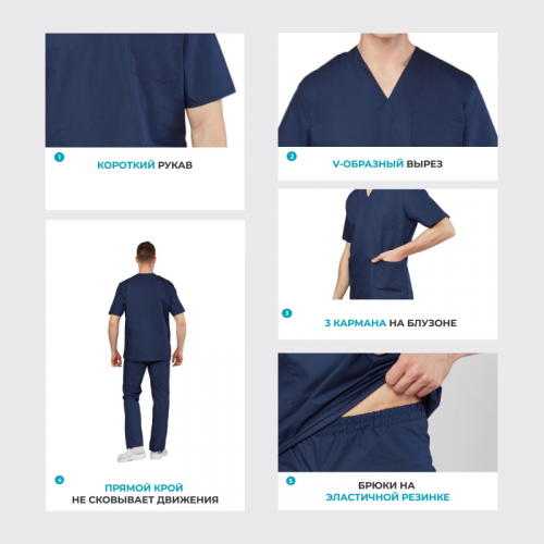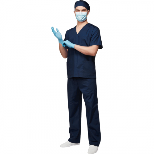 Костюм хирургический м05-КБР синий (размер 44-46, рост 182-188)Костюм м05-КБР предназначен для защиты от общих производственных загрязнений. Универсальная модель подходит для мужчин и женщин, обеспечивая свободу движений и комфорт в процессе работы. МатериалыОсновная ткань: Ти-Си, плотность 120 г/м#, состав 65% полиэстер, 35% хлопок.Защитные свойстваЗ - защита от общих производственных загрязнений.Особенности дизайна и конструкцииТип силуэта и посадка свободные, не стесняют движения. Куртка с коротким рукавом, тремя накладными карманами (один нагрудный, два боковых). Брюки прямые, с эластичной резинкой на талии, карманы на брюках отсутствуют.Рекомендации по уходуСтирка при температуре не выше 40 C.Запрещено отбеливание и химчистка.Глажение при температуре до 110 C.Продукция не является изделием медицинского назначения, производится согласно требованиям ГОСТ 12.4.280-2014. Рекомендуется для работников медицинских, санитарных, лечебно-профилактических и других организаций или учреждений здравоохранения: высший, средний и младший персонал (врачи, медицинские сестры, акушеры, техники, лаборанты, массажисты, фармацевты, сиделки, санитарки и т.д.), административно-хозяйственной группы (заведующие, кладовщики, кухонный персонал и т.д.). target="_blankПодобрать размерЦвет товара на изображении в интернет-магазине или в печатном каталоге может отличаться от оригинала из-за особенностей цветопередачи монитора.