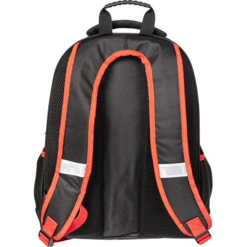 Облегченный вариант ранца отлично подойдет для мальчиков младших классов. Ранец выполнен из нейлона. Прочная конструкция ранца надежно защищает его содержимое за счет плотного формованного материала. Жесткая спинка с мягкими анатомическими вставками с поддержкой в области поясницы. Широкие удобные лямки из воздухообменного сетчатого материала имеют систему регулировки по росту ребенка, что позволяет добиться наиболее комфортного расположения ранца на спине. Ранец оснащен двумя ручками: одна узкая, чтобы вешать на парту, вторая широкая и мягкая, чтобы удобно носить в руке. Плотное, устойчивое дно на ножках. Ранец имеет два основных отдела на молнии. В основном отделении - гибкая перегородка, предназначенная для удобного хранения книг и тетрадей, и прозрачный карман с вкладышем для расписания уроков. Во втором - сетчатый карман и карман-органайзер. Также на ранце по бокам расположены сетчатые карманы для мелких принадлежностей. Светоотражающие элементы на лицевой стороне, боковых частях ранца, на лямках. Размер: 295x125x390 мм.Цвет подкладки рюкзака может отличаться от варианта, представленного на фото. "В рамках ребрендинга производится перевод данного артикула с ТМ №1School на ТМ Комус Класс с сохранением всех потребительских характеристик товара. На переходный период допускается поставка данной продукции в двух вариантах дизайна.