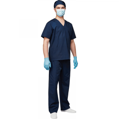 Костюм хирургический м05-КБР синий (размер 56-58, рост 170-176)Костюм м05-КБР предназначен для защиты от общих производственных загрязнений. Универсальная модель подходит для мужчин и женщин, обеспечивая свободу движений и комфорт в процессе работы. МатериалыОсновная ткань: Ти-Си, плотность 120 г/м#, состав 65% полиэстер, 35% хлопок.Защитные свойстваЗ - защита от общих производственных загрязнений.Особенности дизайна и конструкцииТип силуэта и посадка свободные, не стесняют движения. Куртка с коротким рукавом, тремя накладными карманами (один нагрудный, два боковых). Брюки прямые, с эластичной резинкой на талии, карманы на брюках отсутствуют.Рекомендации по уходуСтирка при температуре не выше 40 C.Запрещено отбеливание и химчистка.Глажение при температуре до 110 C.Продукция не является изделием медицинского назначения, производится согласно требованиям ГОСТ 12.4.280-2014. Рекомендуется для работников медицинских, санитарных, лечебно-профилактических и других организаций или учреждений здравоохранения: высший, средний и младший персонал (врачи, медицинские сестры, акушеры, техники, лаборанты, массажисты, фармацевты, сиделки, санитарки и т.д.), административно-хозяйственной группы (заведующие, кладовщики, кухонный персонал и т.д.). target="_blankПодобрать размерЦвет товара на изображении в интернет-магазине или в печатном каталоге может отличаться от оригинала из-за особенностей цветопередачи монитора.