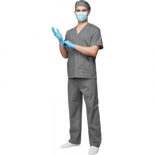 Костюм хирургический м05-КБР серый (размер 60-62, рост 182-188)Костюм м05-КБР предназначен для защиты от общих производственных загрязнений. Универсальная модель подходит для мужчин и женщин, обеспечивая свободу движений и комфорт в процессе работы. МатериалыОсновная ткань: Ти-Си, плотность 120 г/м#, состав 65% полиэстер, 35% хлопок.Защитные свойстваЗ - защита от общих производственных загрязнений.Особенности дизайна и конструкцииТип силуэта и посадка свободные, не стесняют движения. Куртка с коротким рукавом, тремя накладными карманами (один нагрудный, два боковых). Брюки прямые, с эластичной резинкой на талии, карманы на брюках отсутствуют.Рекомендации по уходуСтирка при температуре не выше 40 C.Запрещено отбеливание и химчистка.Глажение при температуре до 110 C.Продукция не является изделием медицинского назначения, производится согласно требованиям ГОСТ 12.4.280-2014. Рекомендуется для работников медицинских, санитарных, лечебно-профилактических и других организаций или учреждений здравоохранения: высший, средний и младший персонал (врачи, медицинские сестры, акушеры, техники, лаборанты, массажисты, фармацевты, сиделки, санитарки и т.д.), административно-хозяйственной группы (заведующие, кладовщики, кухонный персонал и т.д.). target="_blankПодобрать размерЦвет товара на изображении в интернет-магазине или в печатном каталоге может отличаться от оригинала из-за особенностей цветопередачи монитора.