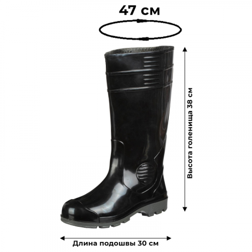 Сапоги рабочие мужские М-431 ПВХ черные размер 43. Сапоги рабочие мужские модели М-431 предназначены для защиты ног от влаги, кислот и щелочей, нефти и нефтепродуктов в различных производственных условиях. Верх обуви выполнен из ПВХ. Утеплителя и подноска нет. Материал верха обеспечивает долговечность и защиту от агрессивных факторов. Подошва из ПВХ, крепление цельнолитое. Это придает обуви прочность и устойчивость к механическим повреждениям. Высота голенища: 38 см. Обувь предназначена для использования в условиях, где возможны воздействия химических веществ, влаги и загрязнений. Подходит для работы на производстве, в сельском хозяйстве и других отраслях. Сапоги соответствуют стандартам ГОСТ 12.4.072-79, ГОСТ 5375-79, ТР ТС 019/2011. Срок эксплуатации - 90 дней, срок хранения - 12 месяцев с момента покупки при соблюдении правил эксплуатации. ЗАКОНОДАТЕЛЬНЫЕ И ТЕХНИЧЕСКИЕ ДОКУМЕНТЫ: