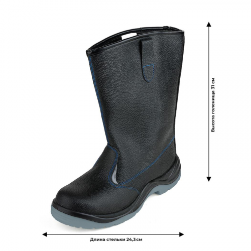 Сапоги рабочие модели 16ТМ подойдут как для мужчин, так и для женщин. Выполнены в чёрном цвете. Размер - 37. Обувь рекомендована к использованию в строительстве, озеленении территории, ЖКХ, промышленности, логистике, нефтегазовой промышленности. Cапоги изготовлены из искусственной кожи. По верху выполнен мягкий кант. Подкладка из искусственного меха. С внешних сторон в верхней голенища выполнены петли для удобства надевания. В носочной части внутренний защитный подносок из металла ударной прочностью 200 Дж. В передней части имеются фигурные световозвращающие элементы для лучшей видимости работника в условиях недостаточной освещенности. Выполнена контрастная отстрочка в тон подкладки. Подошва двухслойная - полиуретан и термополиуретан (ПУ/ТПУ), МБС. Сапоги изготовлены методом литья промежуточного слоя подошвы из полиуретана к заготовке верха обуви. На промежуточный слой из полиуретана прилит ходовой слой из термопластичного полиуретана (температурный режим от -40С до 120С) со стойкостью к деформациям и истиранию. Имеется пристроченный прилитый задний наружный ремень. Стелька вкладная анатомическая. Есть внутренняя амортизирующая вставка в пяточной части подошвы. Глубина профиля ходового слоя подошвы составляет 3.5 мм. Голенище имеет высоту 30 см. Климатический пояс - I и II. Данная модель маслобензиностойкая. Защита от кислот и щелочей концентрации до 20%, от общепроизводственных загрязнений. Соответствуют стандартам ТР ТС 019/2011, ГОСТ 12.4.137-2001, ГОСТ Р 12.4.187-97. Цвет на изображении товара в интернет-магазине или в печатном каталоге может отличаться от оригинала из-за особенностей цветопередачи монитора. Законодательные и технические документы
