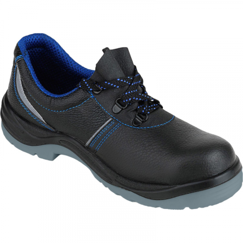 Полуботинки рабочие Prosafe 23Т ПУ-ТПУ кожа черные с металлическим подноском размер 39. Полуботинки предназначены для защиты от механических воздействий, общих производственных загрязнений, ударов, от кислот и щелочи, нефти и нефтепродуктов. Верх обуви изготовлен из искусственной кожи. Подкладка выполнена из текстильного материала, который устойчив к истиранию и эффективно отводит влагу от стопы. Мягкий кант в верхней части обеспечивает комфорт при носке. Полуботинки завязываются на шнурки, закрепляемые через металлические люверсы, и имеют глухой клапан. В носочной части установлен металлический защитный подносок с ударной прочностью 200 Дж. На боковых частях размещены световозвращающие элементы в виде полосок. Контрастная отстрочка синего цвета гармонирует с цветом подкладки.Подошва двухслойная, выполнена из полиуретана и термопластичного полиуретана с глубиной профиля 3.5 мм, обеспечивает устойчивость к деформациям и истиранию. Промежуточный слой подошвы изготовлен методом литья, а ходовой слой из термопластичного полиуретана выдерживает температурный режим от -40С до 120С. В пяточной части предусмотрена амортизирующая вставка. Конструкция подошвы включает пристроченную и прилитую задинку. Стелька анатомическая, вкладная.Соответствуют стандартам ГОСТ 12.4.137-2001, ГОСТ 28507-99, ГОСТ Р 12.4.187-97, ТР ТС 019/2011.Цвет на изображении товара в интернет-магазине или в печатном каталоге может отличаться от оригинала из-за особенностей цветопередачи монитора. Законодательные и технические документы