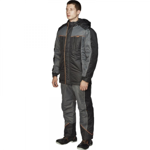 Куртка рабочая зимняя мужская Nайтстар Алькор со светоотражающим кантом черная/серая (размер 44-46, рост 170-176). Рекомендуется для использования в инженерно-технических работах, в пищевой, нефтегазовой промышленности, сельском хозяйстве, логистике, легкой промышленности, строительстве, ЖКХ, ИТР. Изготовлена из мембранной ткани Lokker с водоотталкиванием. Плотность ткани: 160 г/кв.м. Состав ткани: 100% полиэфир. Паронепроницаемость: 5000. Утеплитель: 'слайтекс' плотностью - 360 г/кв.м (основа) 3 слоя по 120 г/кв.м и 240 г/кв.м (руки) 2 слоя по 120 г/кв.м. Защитные свойства: -Защищает от общих производственных загрязнений. -Защищает от пониженных температур. 2 класс защиты, III климатический пояс. Комфортный крой не стесняет движения. Сигнальные и светоотражающие канты и пуллеры. 5 карманов, в том числе 2 влагозащитных. Регулируемые манжеты. Капюшон отстегивающийся, регулируемый. Соответствует ГОСТ 12.4.303-2016, ТР ТС 019/2011. В комплект можно подобрать брюки или полукомбинезон из коллекции Nайтстар Алькор.