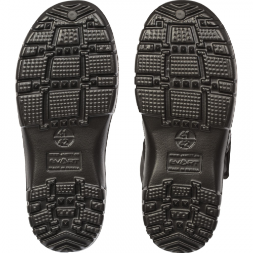 Сапоги мужские Evart Плутон ЭВА комбинированные утеплённые чёрные размер 40-41. Верх и подошва изготовлены из ЭВА, а голенище - из водонепроницаемой ткани оксфорд. Подошва легкая, с амортизирующими свойствами, выполнена из ЭВА. Метод крепления подошвы - бортопрошивной. Утеплитель состоит из флиса и полиэстера. Голенище регулируется липучкой, что позволяет подогнать сапоги под любую полноту ноги. Внутри утеплитель из флиса и ППУ3. Светоотражающая лента на голенище обеспечивает дополнительную безопасность в темное время суток. Высота голенища: 12 см. Модель маломерит на 1 размер. Минимальная температура эксплуатации составляет -10С. Срок годности не ограничен. Соответствуют требованиям ТР ТС 017/2011. Цвет на изображении товара в интернет-магазине или в печатном каталоге может отличаться от оригинала из-за особенностей цветопередачи. Законодательные и технические документы