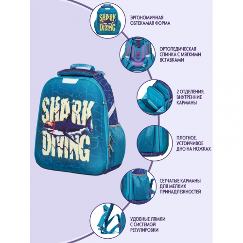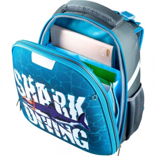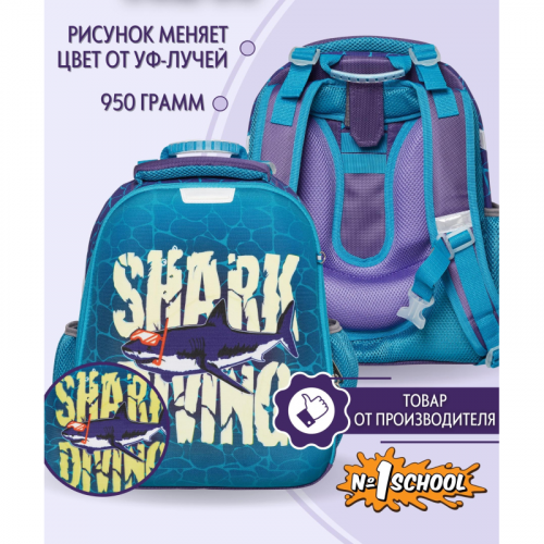 Ранец эргономичной обтекаемой формы с рисунком, который меняет цвет от дневного света! Рисунок на ранце выполнен специальной краской, которая проявляется под УФ-лучами - в помещении краска белая, а на дневном свете меняет свой цвет. Прочная конструкция ранца надежно защищает его содержимое за счет плотного формованного материала. Жесткая анатомическая спинка с мягкими вставками с поддержкой в области поясницы. Широкие удобные лямки из воздухообменного сетчатого материала имеют систему регулировки по росту ребенка, что позволяет добиться наиболее комфортного расположения ранца на спине. Плотное, устойчивое дно на ножках. Ранец имеет два отделения на молнии. В первом отделении - гибкая перегородка, предназначенная для удобного хранения книг и тетрадей. Во втором - сетчатый карман. Также на ранце по бокам расположены сетчатые карманы для мелких принадлежностей. Светоотражающие элементы для дополнительной безопасности на лицевой стороне, боковых частях ранца, а также на лямках. Основной материал - полиэстер. Особенности: рисунок меняет цвет. Размеры (ДхШхВ): 320х215х360 мм.Цвет подкладки рюкзака может отличаться от варианта, представленного на фото. Ранец упакован в плотный брендированный пакет с ручками и с замком Zip Lock, что позволяет удобно переносить ранец, хранить без повреждений. В рамках ребрендинга производится перевод данного артикула с ТМ №1 School на ТМ Комус Класс с сохранением всех потребительских характеристик товара. На переходный период допускается поставка данной продукции в двух вариантах дизайна. Законодательные и технические документы