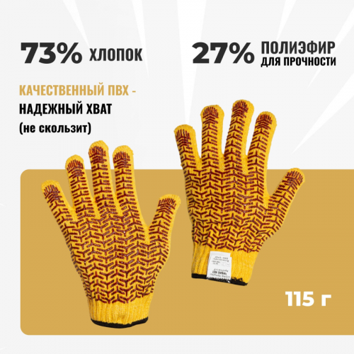 Перчатки рабочие защитные Чибис ХБТ трикотажные с ПВХ покрытием (7 класс, размер 11, XXL). Перчатки предназначены для работы средней тяжести, где требуется механическая защита и умеренная чувствительность. Эти перчатки подходят для строительных, монтажных, погрузочно-разгрузочных работ и общего промышленного использования, а также для бытовых нужд.Основа перчаток изготовлена из качественной хлопкополиэфирной пряжи. Покрытие из гелевого пластизоля без наполнителей обеспечивает высокий уровень сцепления и прочности, а также надежный захват предметов. Перчатки обеспечивают комфорт и защиту на протяжении всего срока эксплуатации.Перчатки соответствуют следующим стандартам:- ТР ТС 019/2011.- ГОСТ 12.4.183-91.- ГОСТ EN 388-2012.- ГОСТ 12.4.252-2013.Перчатки доступны в различных цветах, в зависимости от партии. Цвет на изображении товара может отличаться от оригинала из-за особенностей цветопередачи монитора.ЗАКОНОДАТЕЛЬНЫЕ И ТЕХНИЧЕСКИЕ ДОКУМЕНТЫ: