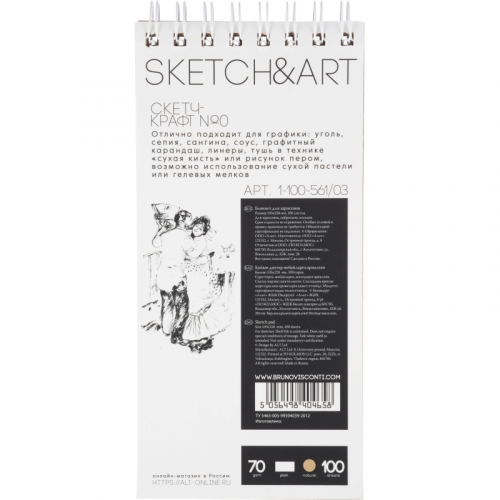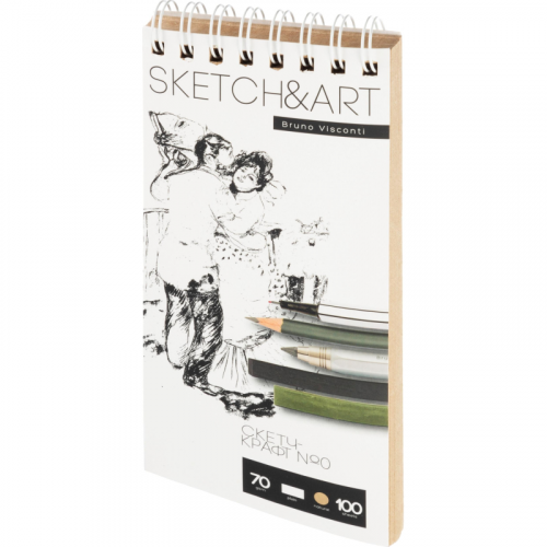 Скетчбук SKETCH&ART 105х220мм 100л ЛЕГКИЙ КРАФТ 70г на гребне 1-100-561/03
