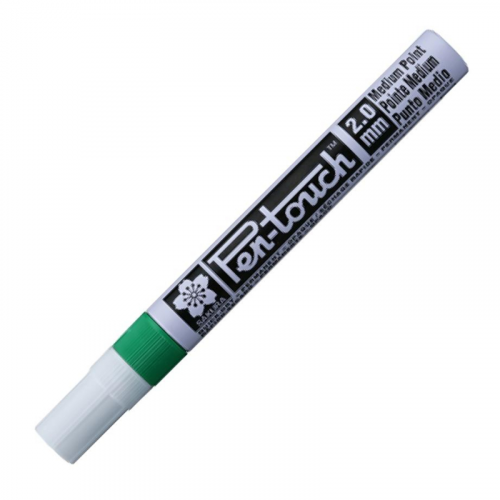 Sakura Pen-Touch - укрывистый маркер на основе растворителя для перманентных меток. Pen-touch работает на большинстве пористых и непористых поверхностей. Маркер в алюминиевом корпусе длинной 141 мм, с клапанным механизмом, обеспечивающим непрерывный поток чернил с высоким содержанием пигмента. Толщина линии - 2 мм, наконечник из синтетического волокна, цвет чернил - зеленый. Пишет на различных поверхностях, включая сталь и железо, листовой металл, стекло и оргстекло, дерево, керамику, фарфор и пластик. Идеально подходит для различных промышленных задач, включая маркировку и идентификацию деталей, труб и трубопроводов, листового металла, проводки, сборки конструкций. Прочно сцепляется с большинством типов поверхностей. Удаляется с непористых поверхностей спиртом или растворителем для лака. Может использоваться при температурах от +5 до +40 °C. Маркер светостойкий, водостойкий, химически стойкий.Инструкция по применению макера:1. Перед использованием хорошенько встряхнуть с закрыт2. Снимите колпачок, прижмите наконечник к поверхности, надавите и удерживайте пока не проступит краска.3. Применять после того как убедитесь, что вытекает исходный цвет.Предостережения: плотно закрывайте колпачок после применения, держать маркер вдали от огня и прямых солнечных лучей.