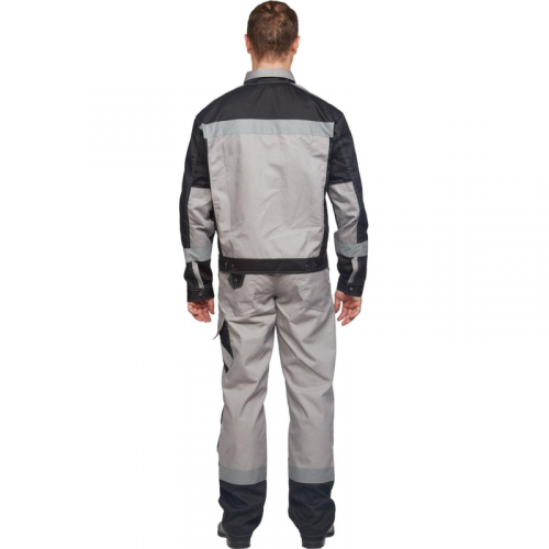 Костюм рабочий летний мужской л21-КБР с СОП серый/черный (размер 40-42, рост 170-176), состоит из куртки и брюк. Изготовлен из смесовой ткани (65% полиэстер, 35% хлопок) плотностью 240 г/кв.м с водоотталкивающей пропиткой (ВО). Светоотражающая полоса шириной 50 мм размещена на груди, спине, рукавах, а также внизу брюк. Куртка c застежкой на молнию и кнопки. На куртке два верхних накладных кармана. Рукава с налокотниками и манжетами. Ширина пояса куртки регулируется кнопками. Брюки прямого силуэта с застежкой на пуговицы. На передней половине брюк расположены два накладных кармана со скошенным входом. На брюках сзади 2 накладных кармана, один из которых на кнопке, а также боковой накладной карман на кнопке. Весь костюм сшит контрастными нитками белого цвета, двойной строчкой. Костюм предназначен для защиты от общих производственных загрязнений и механических воздействий. ГОСТ 12.4.280-2014, ТР ТС 019/2011. Сферы применения: сельское хозяйство, логистика, легкая промышленность, строительство, тяжелая промышленность. Коллекция рабочей одежды л21 представлена двумя видами комплектов: куртка и полукомбинезон л21-КПК, и куртка и брюки Л21-КБР.ЗАКОНОДАТЕЛЬНЫЕ И ТЕХНИЧЕСКИЕ ДОКУМЕНТЫ: