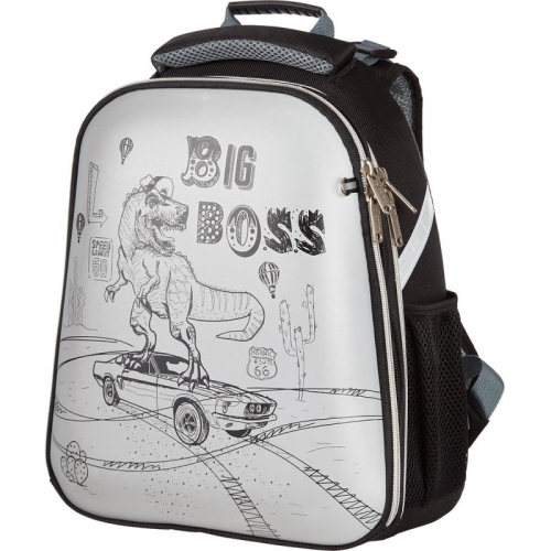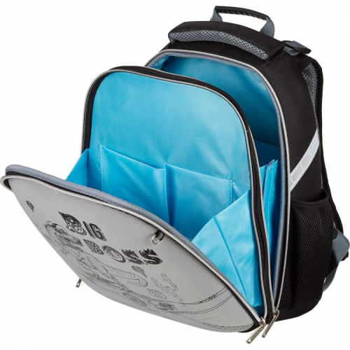Ранец для мальчиков эргономичной обтекаемой формы. Жесткий каркас. Анатомическая спинка. Ранец выполнен из полиэстера. Ранец имеет два отдела на молнии. В основном отделении - гибкая перегородка, предназначенная для удобного хранения книг и тетрадей, и прозрачный карман с вкладышем для расписания уроков. Во втором - сетчатый карман и карман-органайзер. Благодаря устойчивому дну и ножкам ребенку будет удобно находить нужные учебники и тетради. Боковые карманы с сеточкой подходят для переноски маленькой бутылочки с водой и прочих небольших аксессуаров. Ранец оснащен двумя ручками: одна узкая, чтобы вешать на парту, вторая широкая и мягкая, чтобы удобно носить в руке. Широкие удобные лямки из воздухообменного сетчатого материала регулируются по длине и по спинке ранца - удобно подогнать под рост ребенка. Грудная застежка помогает лучше зафиксировать ранец на теле и снять часть нагрузки с плеч. Плотное дно удерживает форму. Для безопасности ребенка в темное время суток предусмотрены светоотражатели на передней части ранца, на лямках и над боковыми карманами. Размер: 320x215x360 мм. Особенности: передняя часть ранца полностью выполнена из светоотражающей ткани с нанесением рисунка! Ярко светится при попадании света от фар. Ранец упакован в плотный брендированный пакет с ручками и с замком Zip Lock, что позволяет удобно переносить ранец, хранить без повреждений. В рамках ребрендинга производится перевод данного артикула с ТМ №1 School на ТМ Комус Класс с сохранением всех потребительских характеристик товара. На переходный период допускается поставка данной продукции в двух вариантах дизайна. Законодательные и технические документы