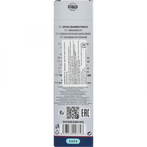 Карандаш Koh-i-Noor красный/синий шестигранный (двусторонний, 34330EG001KSRU) Двухсторонний карандаш в деревянном шестигранном корпусе предназначен для рисования и работы с картами. Применяется картографами и школьниками для контурных карт. Рекомендованный возраст от 3 лет. Диаметр корпуса: 7 мм. Длина корпуса: 175 мм. Диаметр грифеля: 3.2 мм. Грифель синий с одной стороны, красный - с другой. Обе стороны заточены. Карандаш продается поштучно. Промежуточная упаковка - картонная коробка с европодвесом, содержит 12 карандашей. Размер упаковки: 48x16x178 мм.
