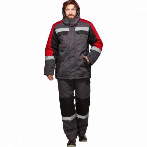 Костюм рабочий зимний мужской Формула-КПК с СОП серый/красный (размер 56-58, рост 170-176). Рекомендован для использования в логистике, легкой промышленности, тяжелой промышленности, строительстве, ЖКХ. Состоит из куртки и полукомбинезона. Состав ткани: "Орион-1" смесовая с водоотталкивающей отделкой (65% полиэстер, 35% хлопок, плотность 240 г/кв.м). Подкладка: ветрозащитная (100% полиэфир, плотность 60 +/- 5 г/кв.м). Утеплитель: полотно высокоизвилистое, силиконизированное "Аляска", плотностью 450 г/кв.м (основа) 3 слоя по 150 г/кв.м и 300 г/кв.м (руки/ноги) 2 слоя по 150 г/кв.м. Защитные свойства: -Защищает от общих производственных загрязнений. -Защищает от пониженных температур. Ветрозащитная планка с застежкой на ленту-контакт. Воротник стойка, капюшон утепленный, съемный. Фигурная линия низа и регулировка ширины куртки по талии. Полукомбинезон утепленный, с центральной застежкой на тесьму "молния". Эластичная резинка по талии спинки. Полукомбинезон с различными многофункциональными карманами. В костюме используется светоотражающая полоса 50 мм. Усилительные накладки в области колен по низу шаговых швов. Внутренний трикотажный манжет. Отрасли: ЖКХ, строительство, легкая и тяжелая промышленности, логистика. Соответствует ГОСТ 12.4.303-2016, ТР ТС 019/2011. размер Цвет на изображении товара в интернет-магазине или в печатном каталоге может отличаться от оригинала из-за особенностей цветопередачи монитора.