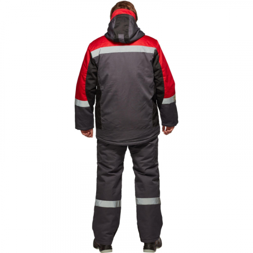 Костюм рабочий зимний мужской Формула-КПК с СОП серый/красный (размер 60-62, рост 182-188). Рекомендован для использования в логистике, легкой промышленности, тяжелой промышленности, строительстве, ЖКХ. Состоит из куртки и полукомбинезона. Состав ткани: "Орион-1" смесовая с водоотталкивающей отделкой (65% полиэстер, 35% хлопок, плотность 240 г/кв.м). Подкладка: ветрозащитная (100% полиэфир, плотность 60 +/- 5 г/кв.м). Утеплитель: полотно высокоизвилистое, силиконизированное "Аляска", плотностью 450 г/кв.м (основа) 3 слоя по 150 г/кв.м и 300 г/кв.м (руки/ноги) 2 слоя по 150 г/кв.м. Защитные свойства: -Защищает от общих производственных загрязнений. -Защищает от пониженных температур. Ветрозащитная планка с застежкой на ленту-контакт. Воротник стойка, капюшон утепленный, съемный. Фигурная линия низа и регулировка ширины куртки по талии. Полукомбинезон утепленный, с центральной застежкой на тесьму "молния". Эластичная резинка по талии спинки. Полукомбинезон с различными многофункциональными карманами. В костюме используется светоотражающая полоса 50 мм. Усилительные накладки в области колен по низу шаговых швов. Внутренний трикотажный манжет. Отрасли: ЖКХ, строительство, легкая и тяжелая промышленности, логистика. Соответствует ГОСТ 12.4.303-2016, ТР ТС 019/2011. размер Цвет на изображении товара в интернет-магазине или в печатном каталоге может отличаться от оригинала из-за особенностей цветопередачи монитора.
