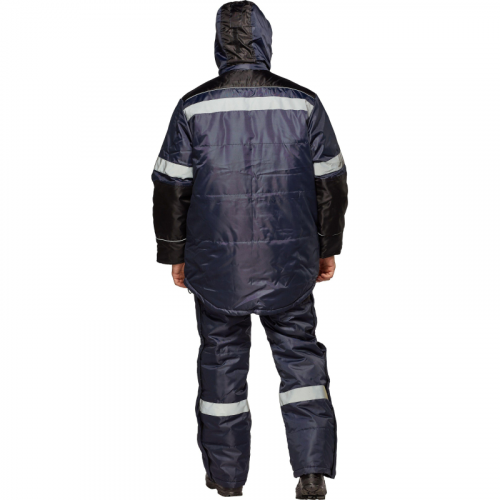 Костюм рабочий зимний мужской Памир-КПК с СОП синий/черный (размер 48-50, рост 182-188). Рекомендован для использования в легкой промышленности. Ткань верха: 'Оксфорд 240' с полиуретановым водонепроницаемым ветрозащитным покрытием (100% полиэстер, плотность 95+10 г/кв.м). Утеплитель из синтепона, плотностью - 450 г/кв.м (основа) 3 слоя по 150 г/кв.м и 300 г/кв.м (руки/ноги) 2 слоя по 150 г/кв.м. Технология изготовления термоскрепленного синтепона (евросинтепона) позволяет использовать данный утеплитель для создания более тонких изделий с сохранением термозащитных свойств. Важными преимуществами утеплителя являются легкость и хорошая пластичность, что улучшает подвижность в костюме. А также исключение миграции волокна через ткани верха и подкладки за счет скрепления слоев. Подкладка: 'Таффета 190' (100% полиэстер, плотность 55+10 гр./кв.м). Защитные свойства: -Защищает от общих производственных загрязнений. -Защищает от пониженных температур. Ветрозащитная планка с застежкой на кнопки и ленту-контакт. В куртке различные многофункциональные карманы. Ветрозащитная юбка на подкладке куртки. Регулировка ширины изделия по низу куртки. Воротник-стойка на флисовой подкладке. Капюшон съемный с подкладкой из флиса. Полукомбинезон с ОТС, с центральной застежкой на тесьму "молния". Различные многофункциональные карманы. Кулиска по талии спинки на полукомбинезоне. В костюме используется светоотражающая полоса 50 мм и светоотражающий кант. размер Цвет на изображении товара в интернет-магазине или в печатном каталоге может отличаться от оригинала из-за особенностей цветопередачи монитора.