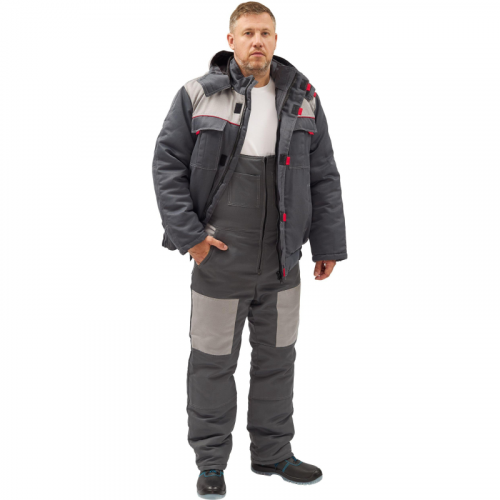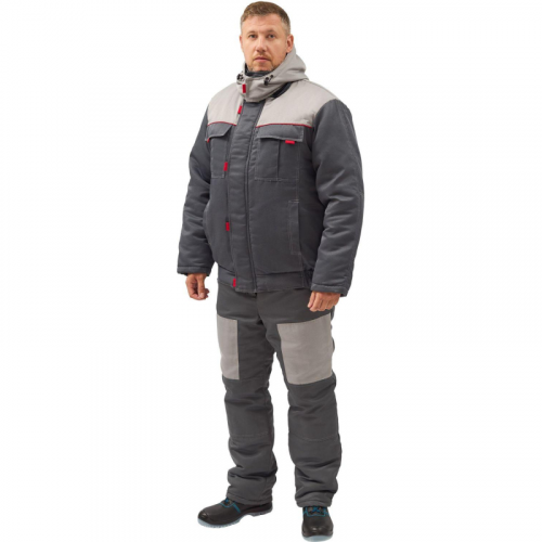 Костюм рабочий зимний мужской Фаворит-2 серый (размер 44-46, рост 182-188). Рекомендован для использования в легкой промышленности. Ткань верха: смесовая (80% полиэстер, 20% хлопок), плотность 200 +10 г/кв.м, с водоотталкивающей отделкой. Утеплитель из синтепона, плотностью - 400 г/кв.м (куртка), 4 слоя по 100 г/кв.м и 200 г/кв.м (полукомбинезон), 2 слоя по 100 г/кв.м. Технология изготовления термоскрепленного синтепона (евросинтепона) позволяет использовать данный утеплитель для создания более тонких изделий с сохранением термозащитных свойств. Важными преимуществами утеплителя являются легкость и хорошая пластичность, что улучшает подвижность в костюме. А также исключение миграции волокна через ткани верха и подкладки за счет скрепления слоев. Подкладка: 100% полиэфир. Костюм с контрастной отстрочкой. Защитные свойства: -Защищает от общих производственных загрязнений. -Защищает от пониженных температур. Укороченная куртка, на поясе с резинкой по боковым швам. Застежка на молнию, закрытую ветрозащитной планкой на липучках. Нагрудные карманы объемные за счет складки с клапанами на липучку. Нижние карманы в рельефных швах полочек. Внутренним накладным карманом на подкладке. Усилительные фигурные накладки в области локтей. Съемный капюшон с регулировкой объема по лицевой части. Возможность использования капюшона на каску. Трикотажные манжеты по низу рукавов. Полукомбинезон с различными многофункциональными карманами. С кулисой по талии спинки. Усилительные накладки в области колена. размер Цвет на изображении товара в интернет-магазине или в печатном каталоге может отличаться от оригинала из-за особенностей цветопередачи монитора.